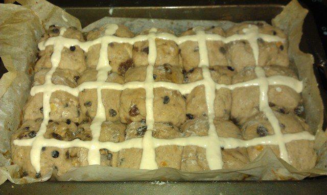 Actually, ‘love’ isn’t strong enough to explain my emotions about hot cross buns. One year I bought 8 dozen and froze them to ration throughout the year because I was so upset that there weren’t going to be any in the stores for 9 months. They took up our whole freezer.