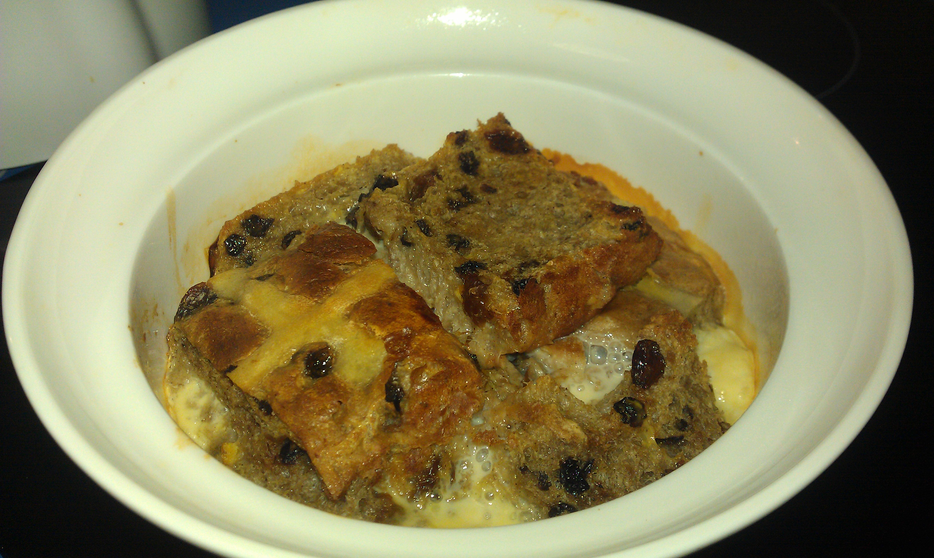 What should you do with hot cross buns on Easter Monday? They’re slightly stale but you know they won’t be back for nearly a year so they can’t go to waste. You could toast them and put a slab of butter between their warm cheeks or you could make the best ever Bread and Butter Pudding!