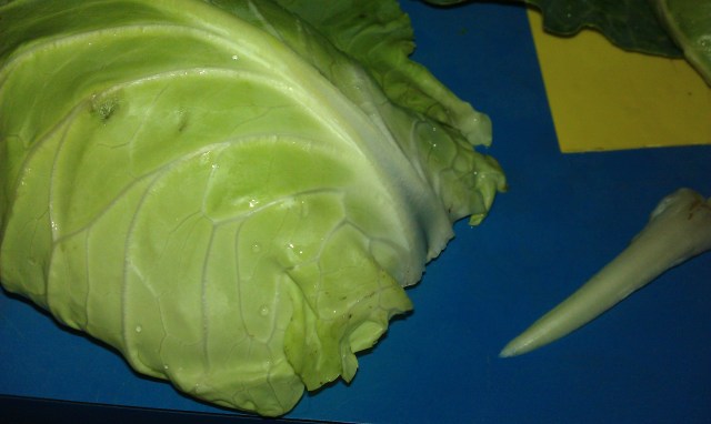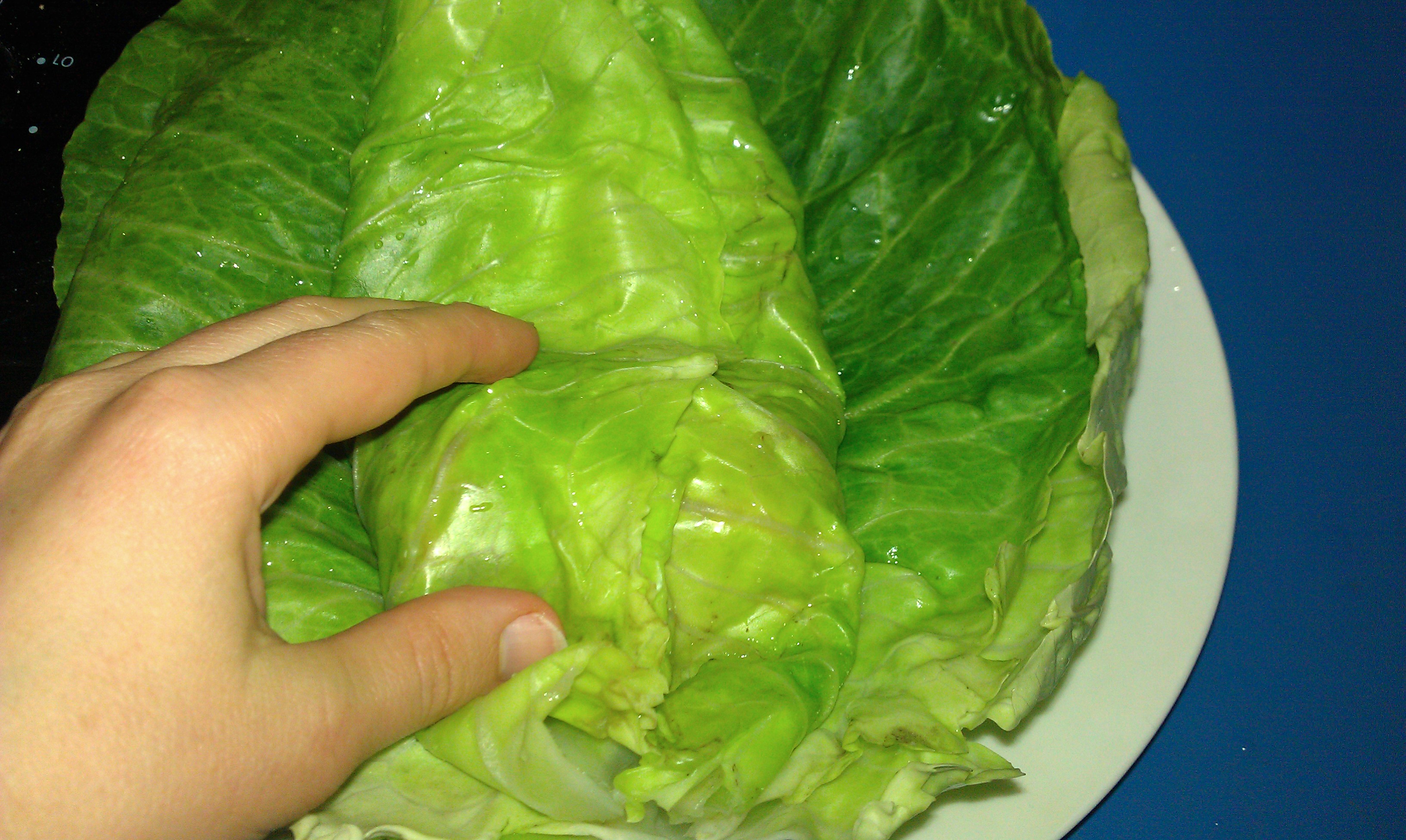 The only ‘tricky’ part is preparing the cabbage leaves. You need to get them off the head more-or-less in one piece, slice off the thickest part so they can be rolled and soften them in some hot water. The outside layers are pretty easy to get off, but then it can be easier to dunk the rest of the head of cabbage in some very hot water to soften the leaves before taking them apart. Also, cabbages have a thicker section down the centre to the base, this needs to be thinned to make them easier to roll. Eventually you end up with a stack of softened cabbage leaves, around 10 is enough.