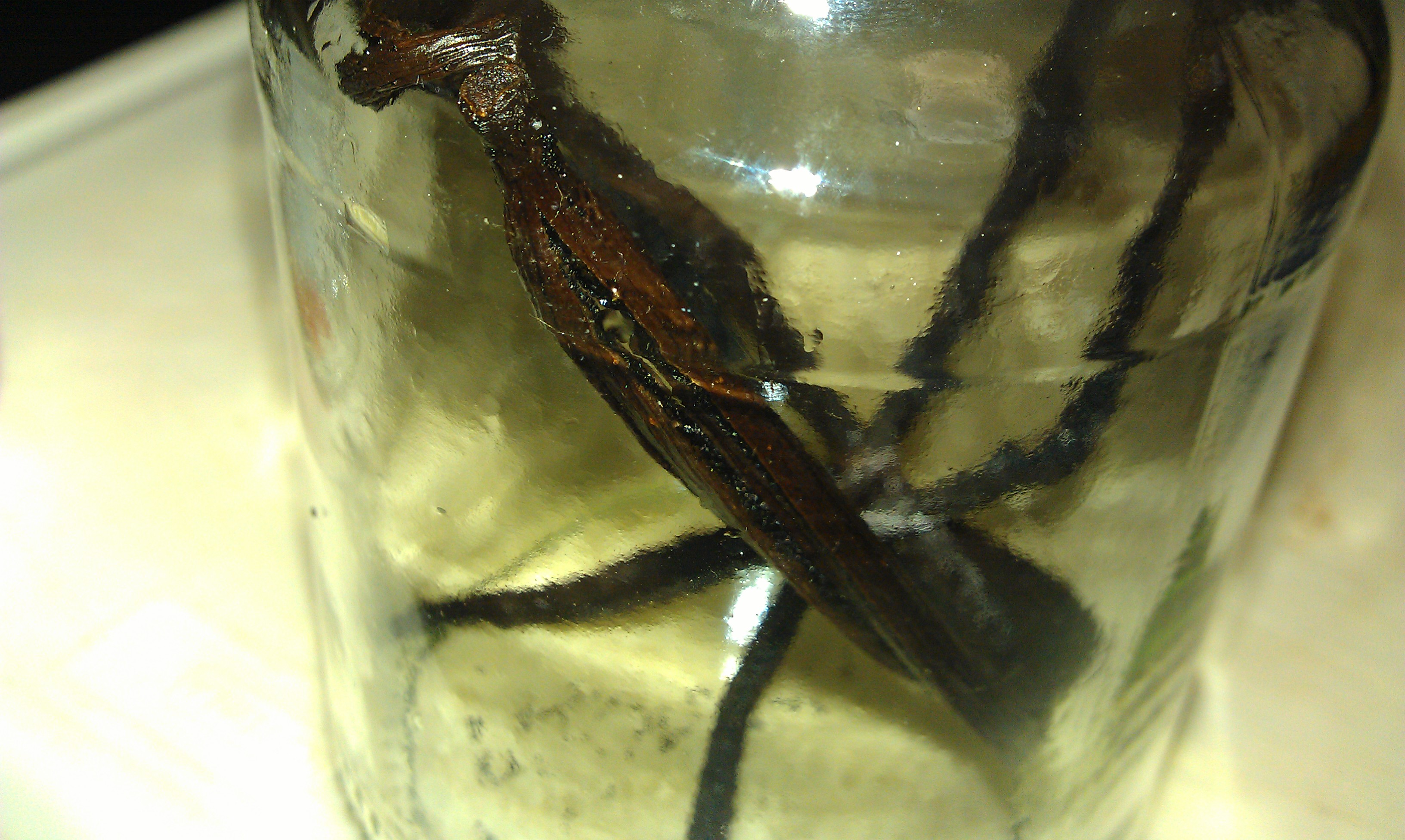 I’ve been seeing a lot about making your own vanilla extract and given I have recently acquired a sweet-tooth and I’m going through vanilla extract en masse I thought it was worth a try. So I caught a big hairy spider and put it in a jar of vodka…