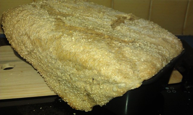 The recipe is right on this one but I’m really interested in getting the biggest loaf I can out of my pan without it turning it into elephant-man bread. On top of the bread turning into curtains, I also managed to melt plastic-handled knife in the oven this day so I had a “Dali-Day” I guess.