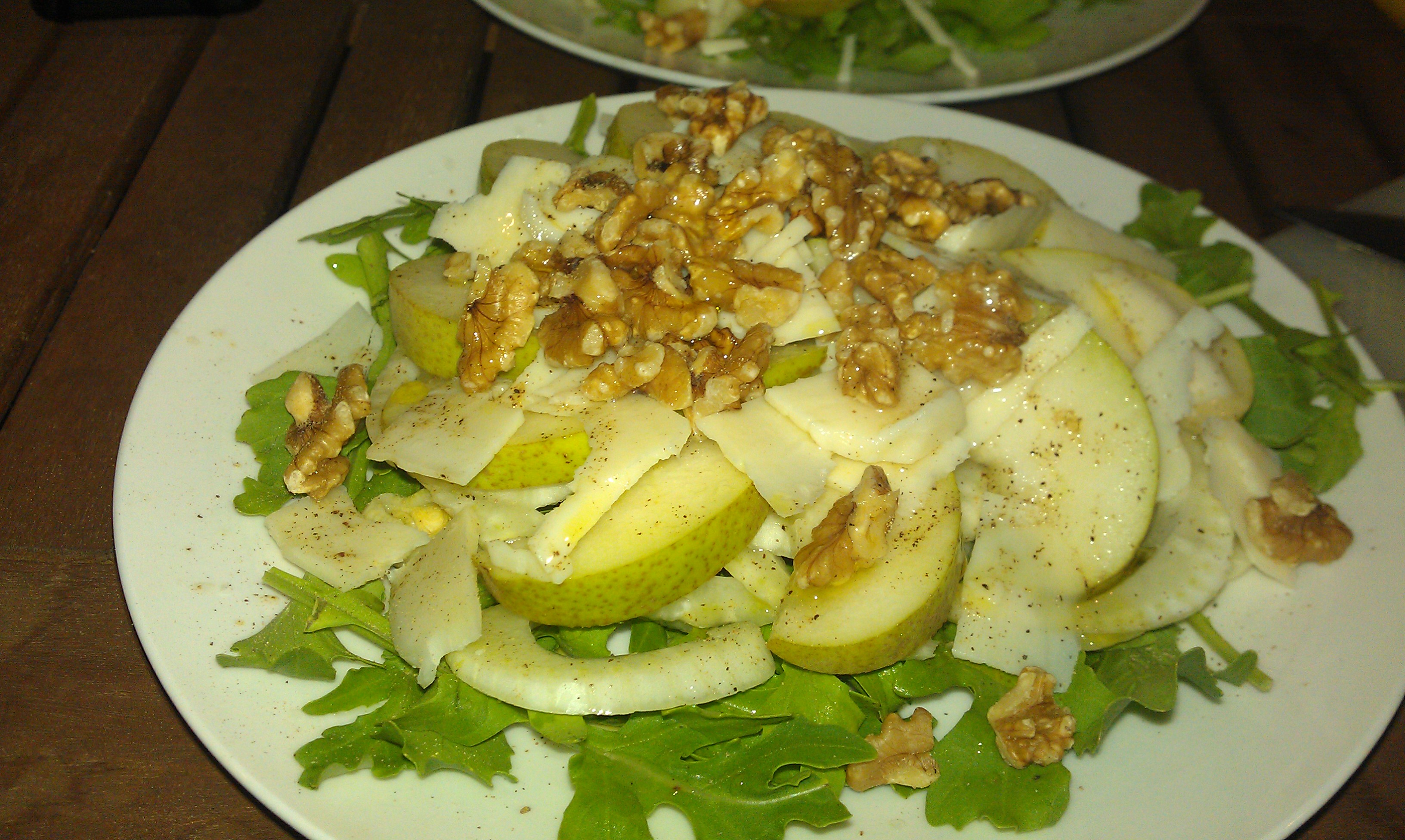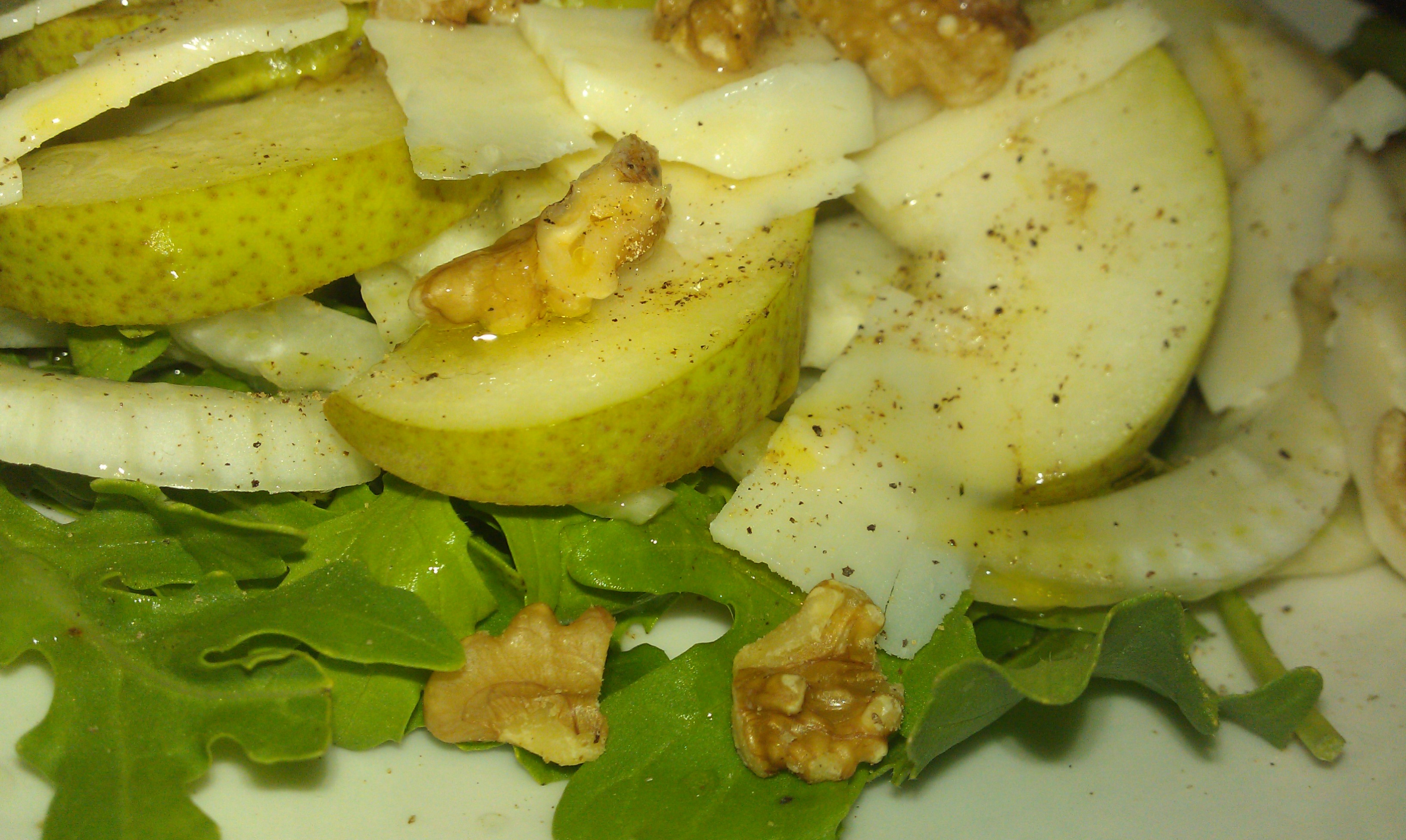 I first made this salad to go with a leek and goats cheese tart and it was a wonderful combination as the pear, fennel and parmesan salad has so much character and texture.