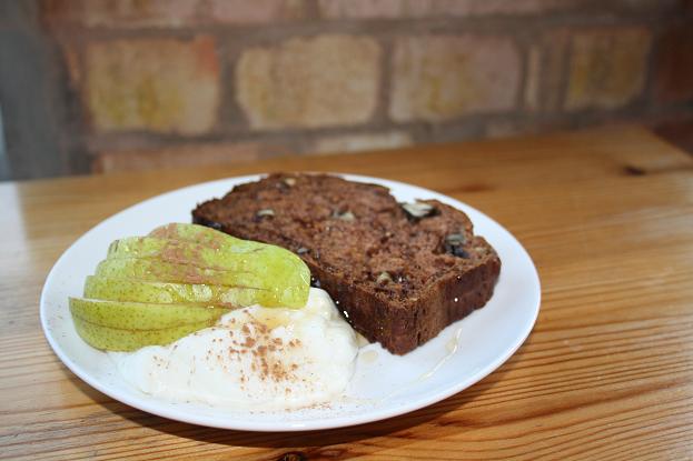The obvious thing to do was make a banana loaf, but I wanted to make one that was healthy enough to eat for breakfast. So here is a breakfast banana loaf recipe to serve toasted with ricotta, honey and pear. It’s subtly sweet from the apple and banana but no extra sugar and moist without added oil.
