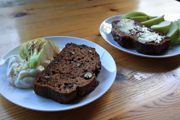 Lots of sweet recipes this week because the freezer door was ajar one morning and some ripe bananas and apple puree that were in the freezer defrosted themselves and then begged me to be baked into tasty treats.