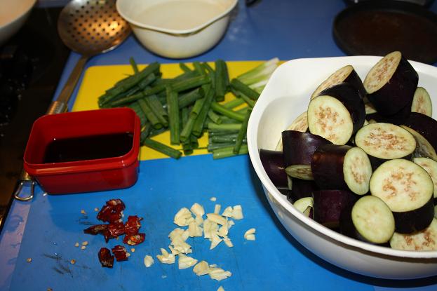 Be prepared! Scouts motto and useful advice for chinese eggplant. Have everything ready when working with hot oil.