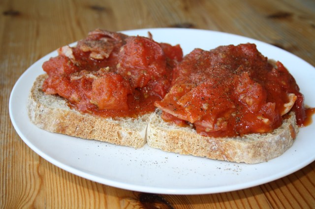 It looks like a lot of tomato, but it cooks down and you’ll want a big serving of this tasty breakfast!