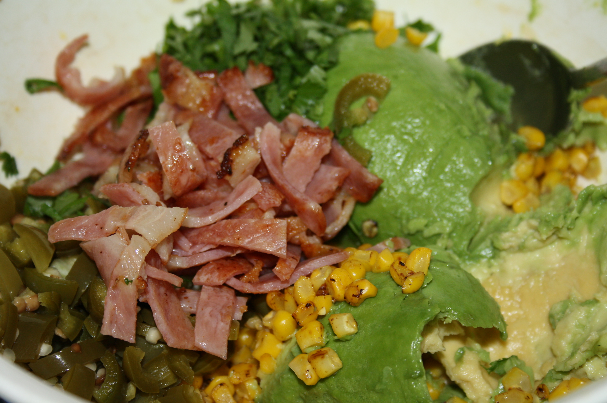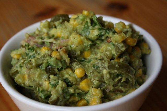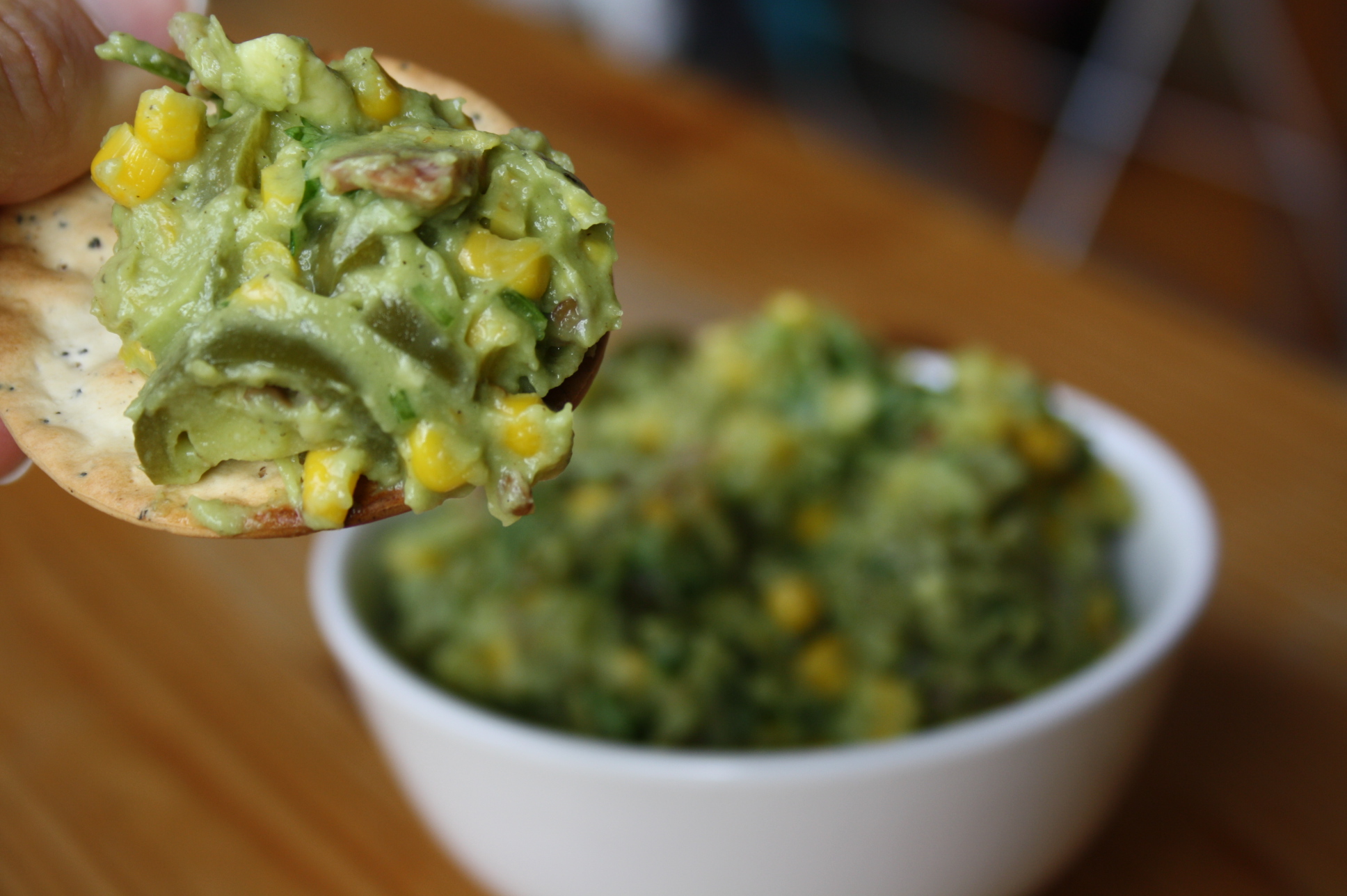 You start with beautiful, creamy avocado through which you can find salty, crispy little bacon morsels, followed by bursts of sweet corn all rounded out with spicy, crunchy, pickled jalapeno and coriander.