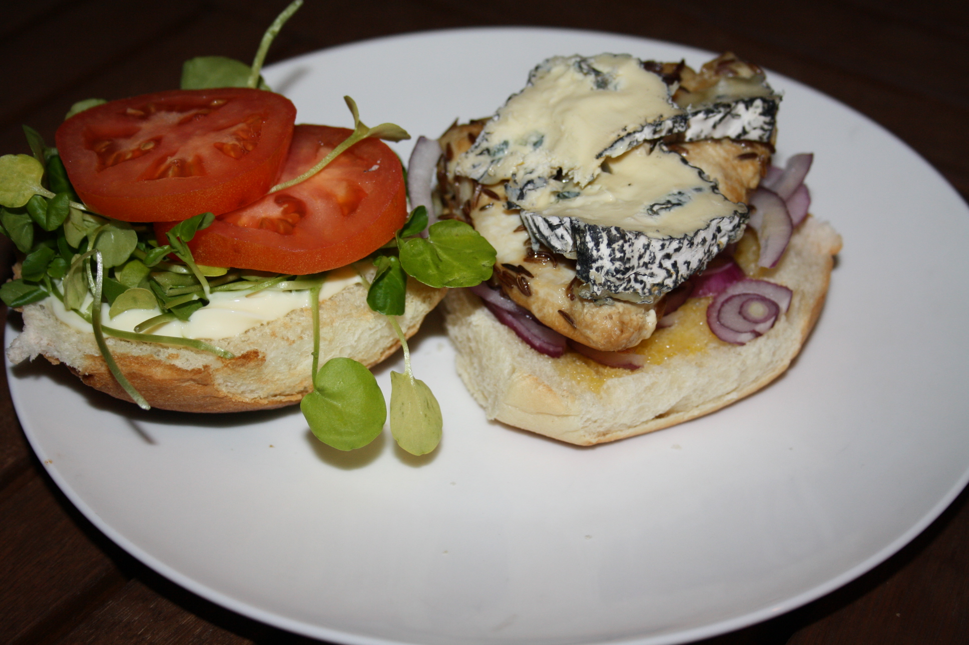 Grill, fry or barbeque your chicken, however you best like to cook burgers (and depending on the weather and your availability to a BBQ). While the chicken is cooking slice your vegies and cheese.