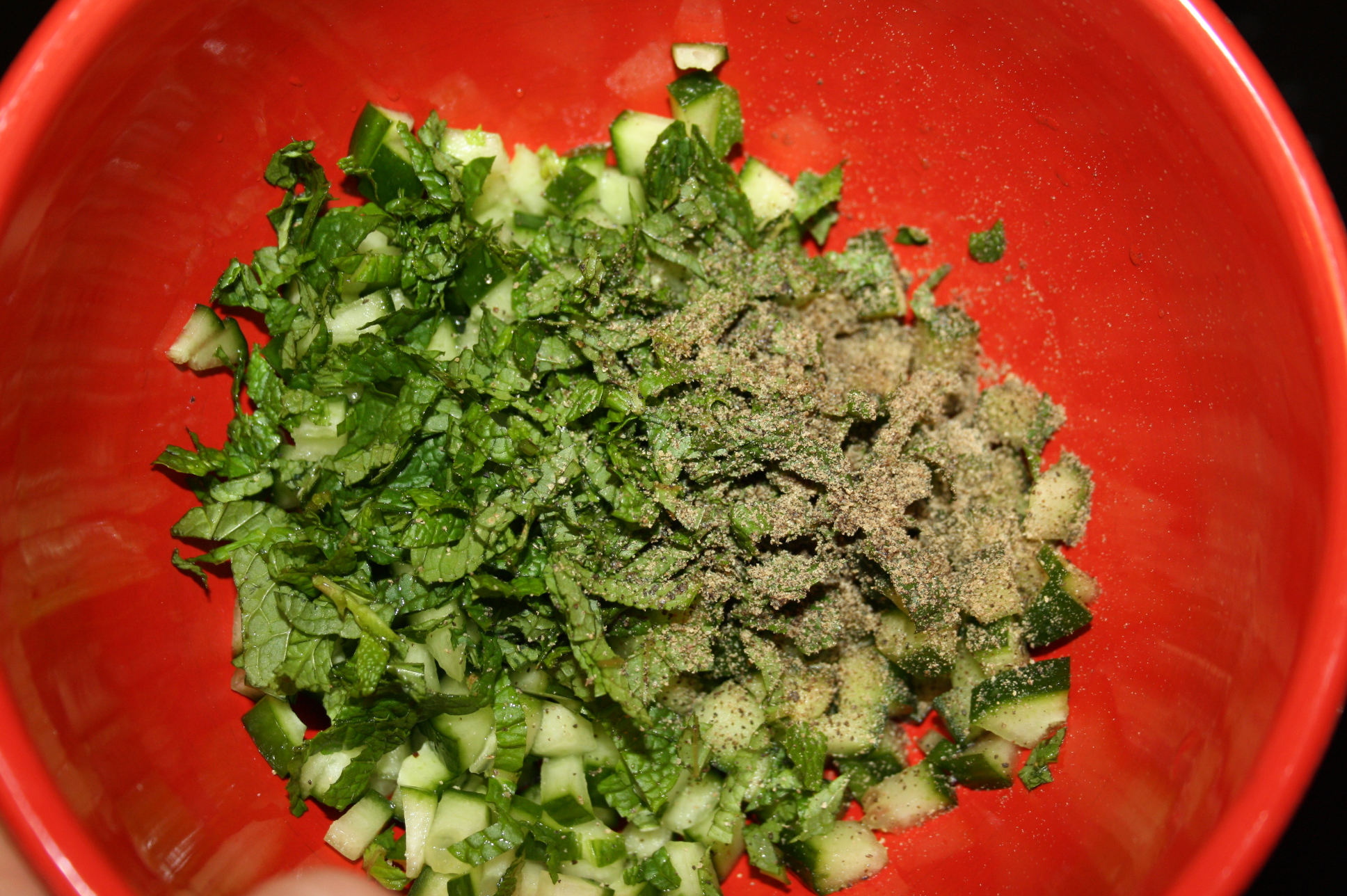 A drizzle of oilCucumber and Mint Yoghurt Sauce