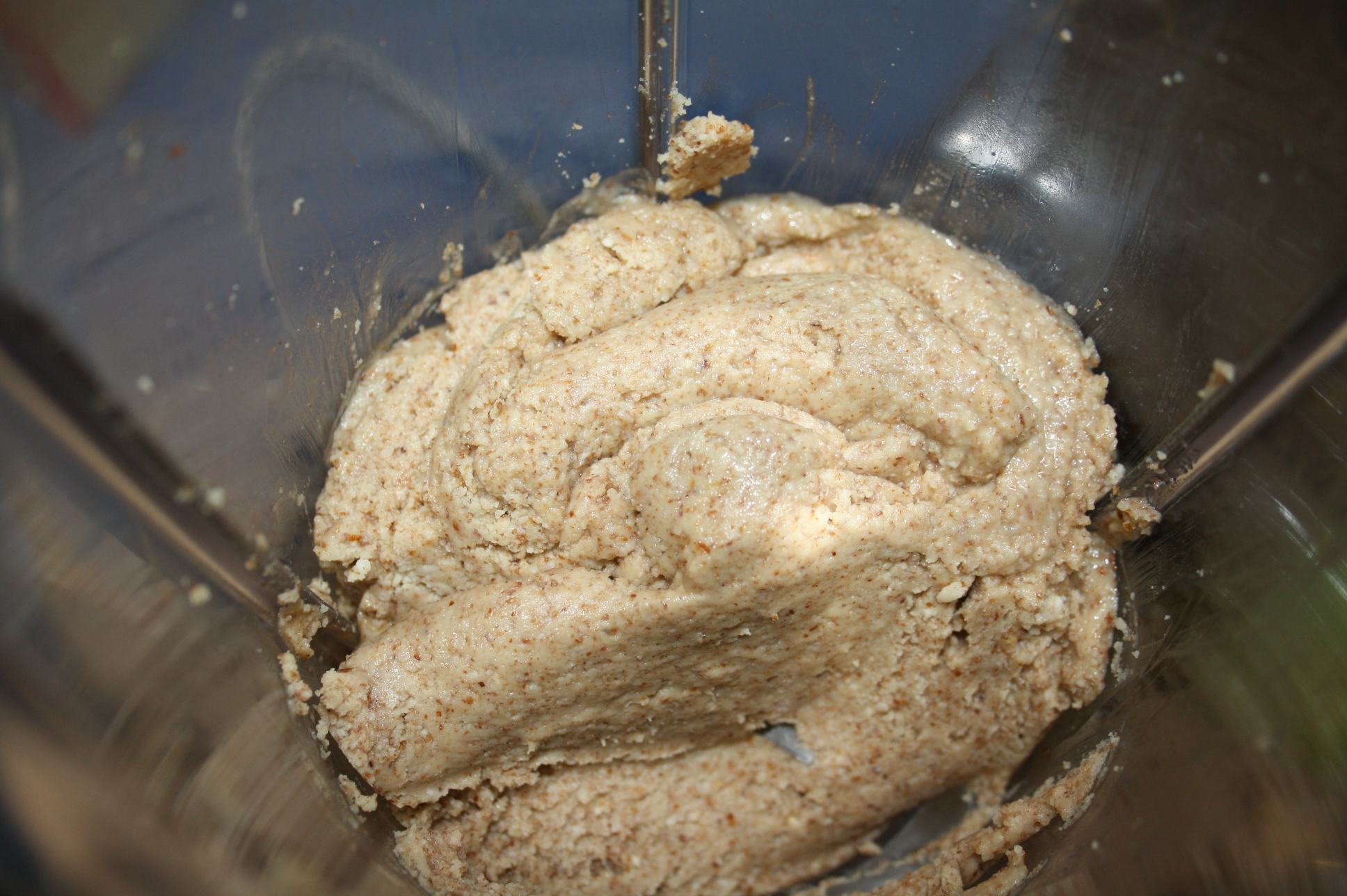 This is pretty straight forward, take the nuts and blend. The better your blender the easier it will be. My blender is fairly weak so it took a little bit more patience and love, but we got there. Keep scraping down the sides to incorporate the larger pieces.