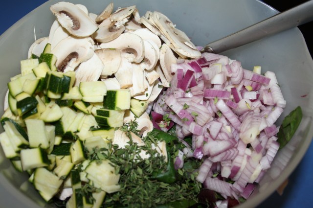 Prepare all the rest of the ingredients. If you don’t want mushrooms or zucchini you can leave them out or change the vegetable but I wouldn’t recommend tomato as it has too much moisture.