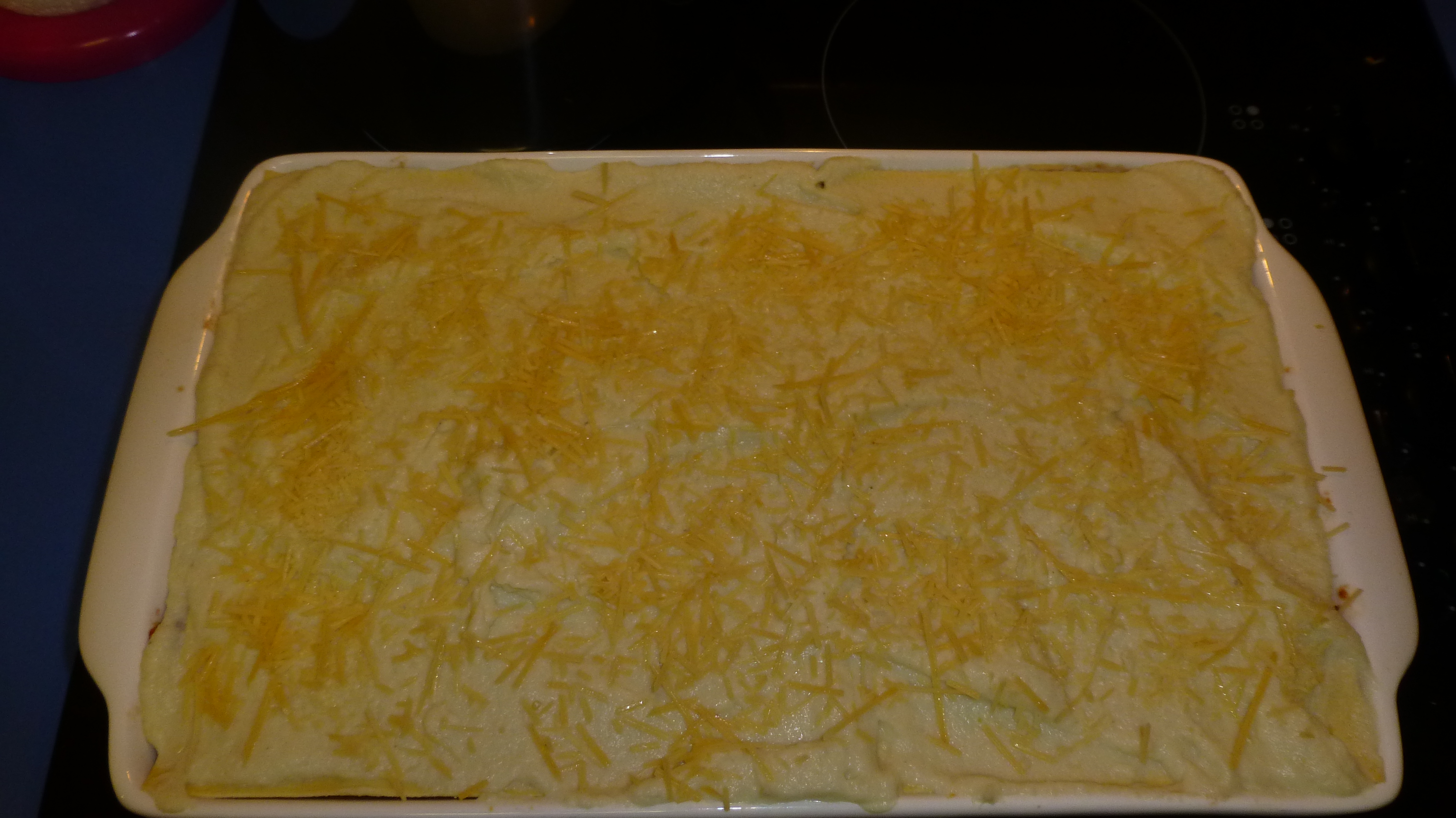 4. Make the cauliflower béchamel by blending until smooth the cauliflower, one stock cube and enough water/milk to make it a nice smooth sauce.
