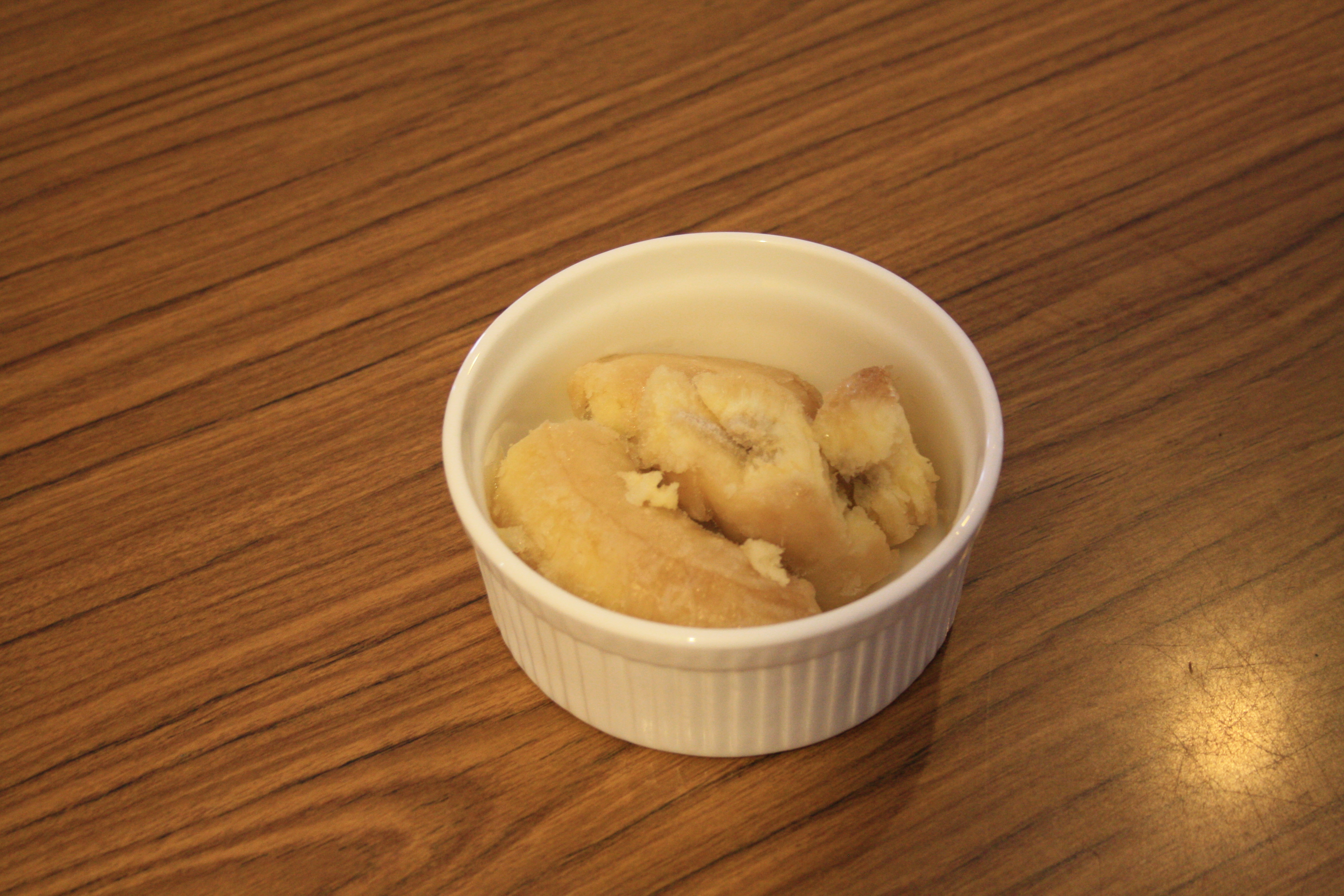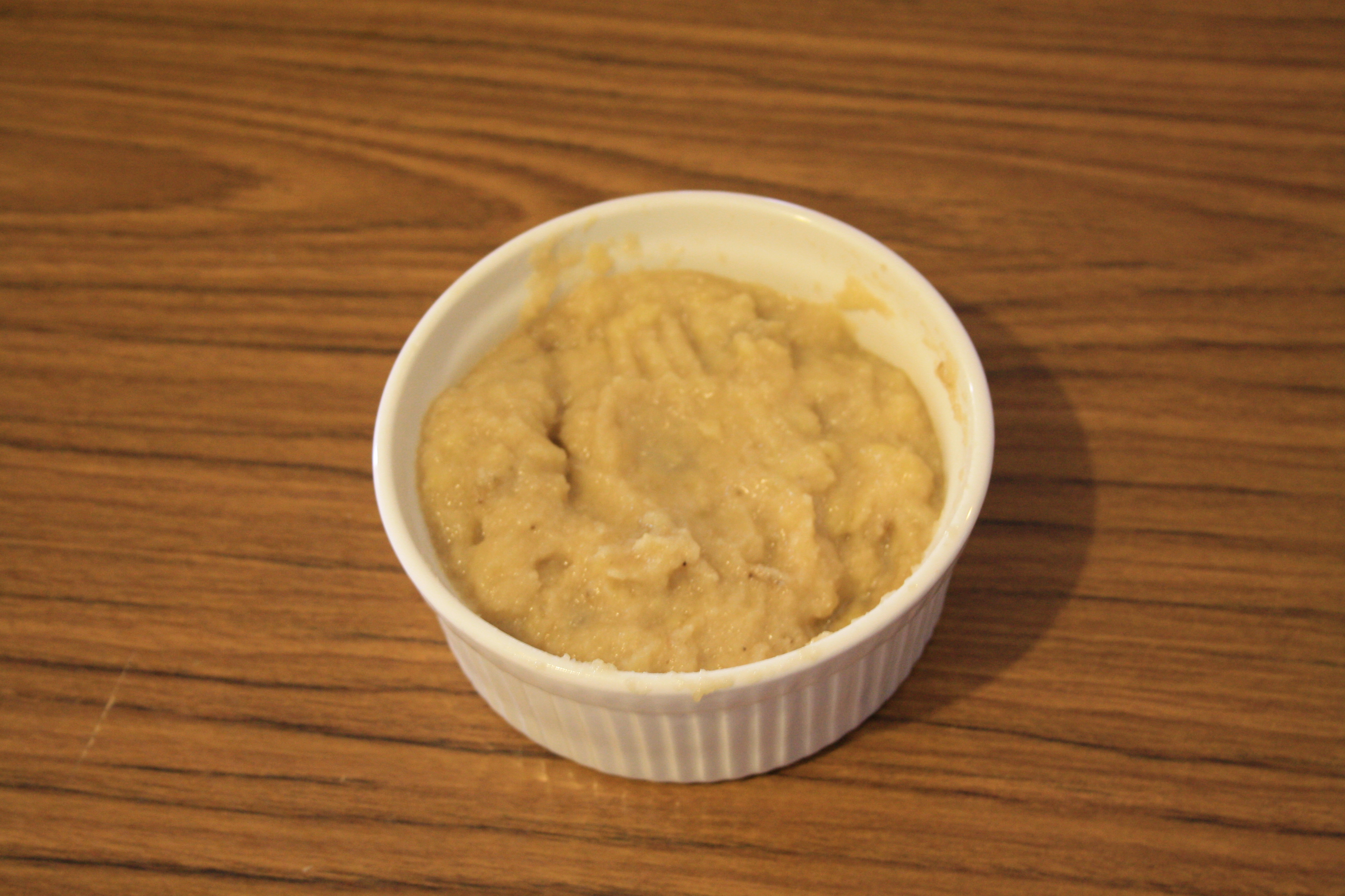 • Mash banana (microwave for 1 minute if frozen – this is actually easier than a fresh banana)
